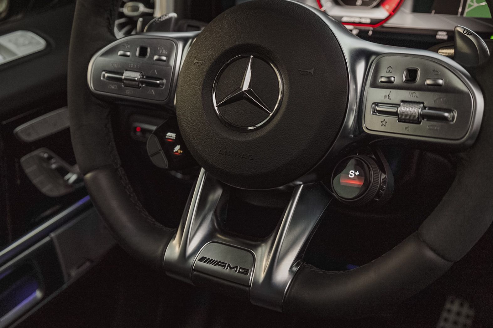 -Volante deportivo AMG en cuero negro y alcantara con levas integradas