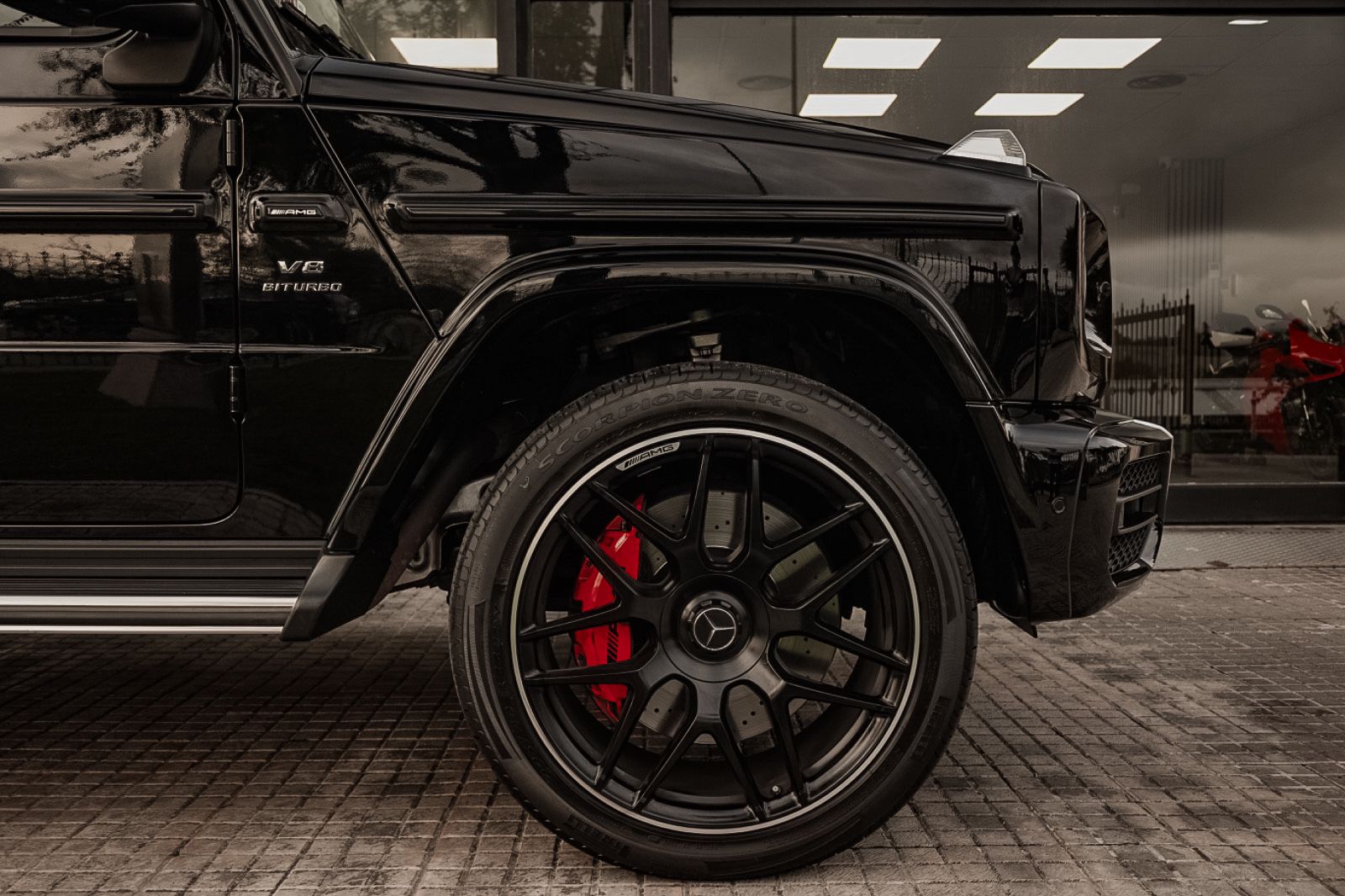 -Pinzas de freno en rojo brillo con logotipo AMG